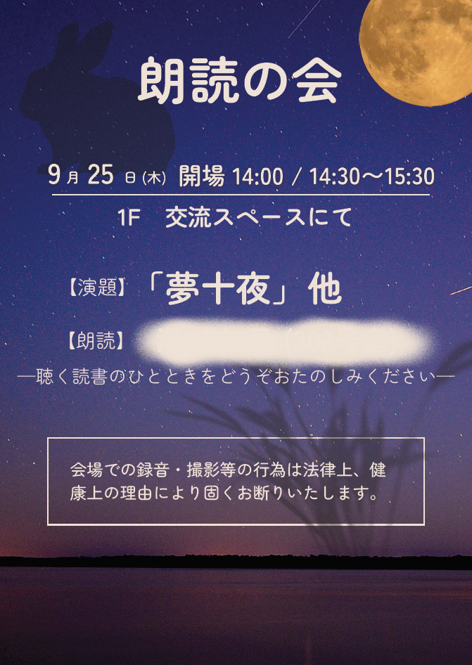 夏目漱石の「夢十夜(第三夜)」をメインとした、様々なお話をお楽しみいただきました。