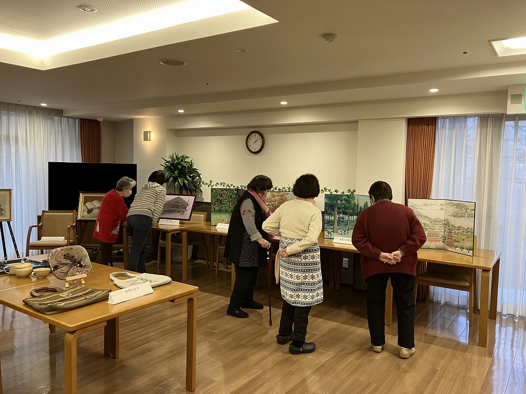 先月11月29日には、リーフエスコート国立富士見台の入居者の皆様の作品を展示し、久しぶりの「芸術鑑賞会」を開催しました。