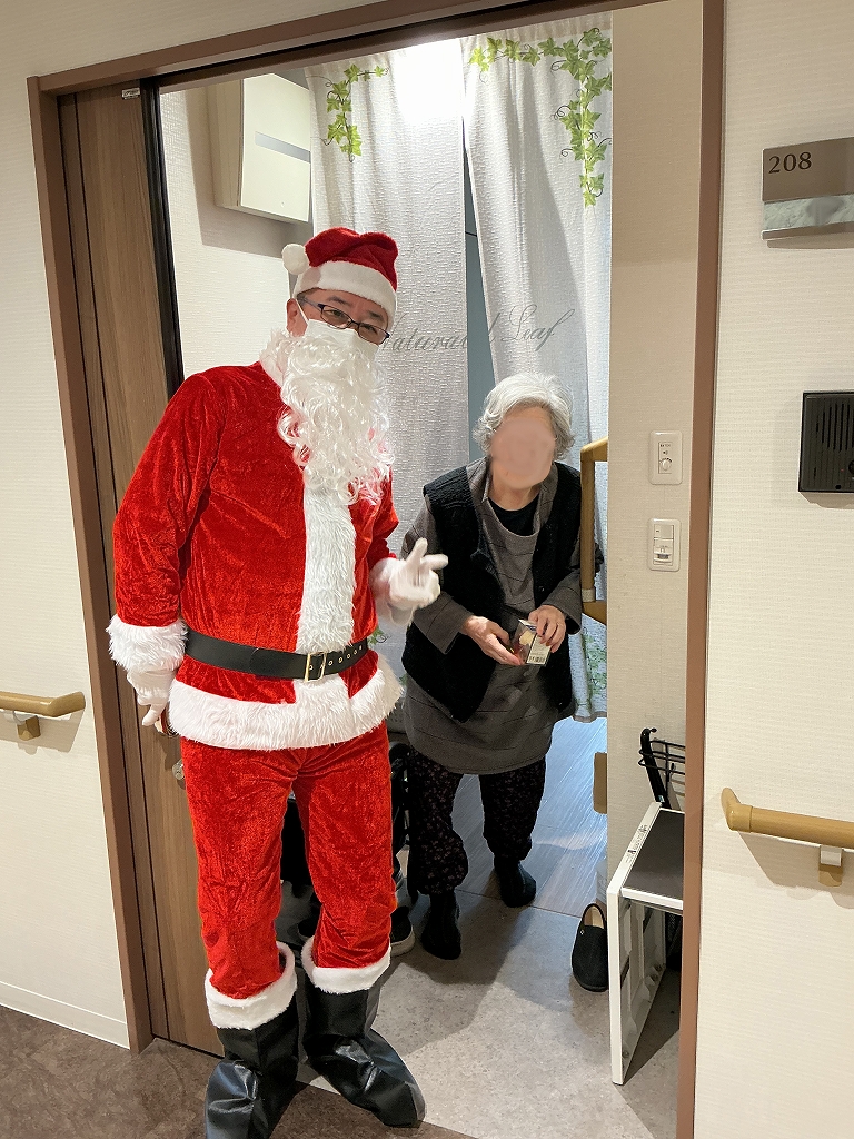12月といえば。17日に消防点検と同時にサンタクロースが一足先にリーフエスコート国立富士見台へやってきました。